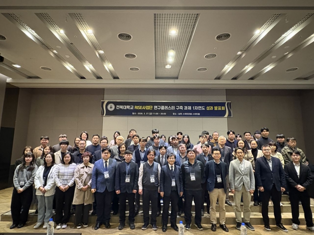 전북대는 지난 27일 남원 스위트호텔에서 ‘연구클러스터 구축 과제 1차 연도 성과 공유회’를 열고 생명산업과 전환산업을 중심으로 한 연구 성과를 발표했다.